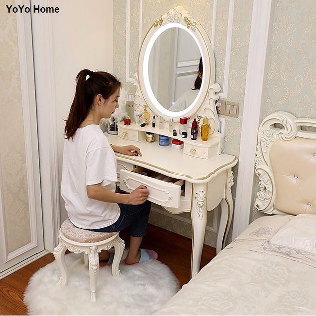 33 Gorgeous Makeup Vanities Plus Tips To Help You Accessorize Yours from cdn.home-designing.com Costway vanity table 10 dimmable bulbs makeup desk whiteblackbrown. If you don't have a lot of wall space… this is for you! A vanity set or standalone makeup vanity adds functionality to your bedroom or dressing area, creating a designated space to choose accessories, do your hair, or put on makeup. 99 list list price $200.37 $ 200. The vanity is a small dressing table with two small drawers. Storage meets style in the. Shop our best selection of bedroom & makeup vanity stools and benches to reflect your style and inspire your home. Makeup table touch screen mirror vanity table set wood dressing table mirror stool 4 storage drawers 32.28 l x 15.74 w x 52.16 h.